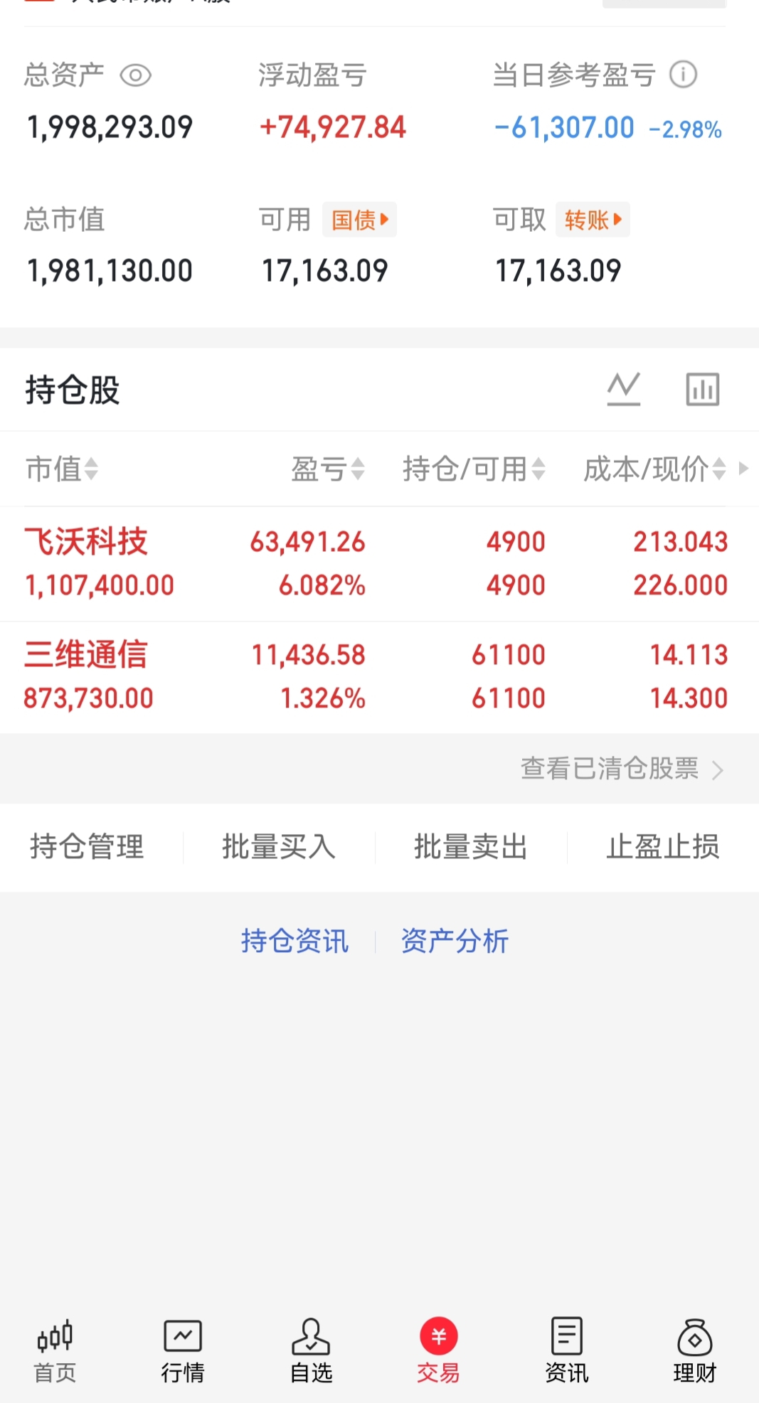 小周挑战日记(24)今日买入:继续持有:三维、飞沃感谢大家的支持与互动,点赞富一