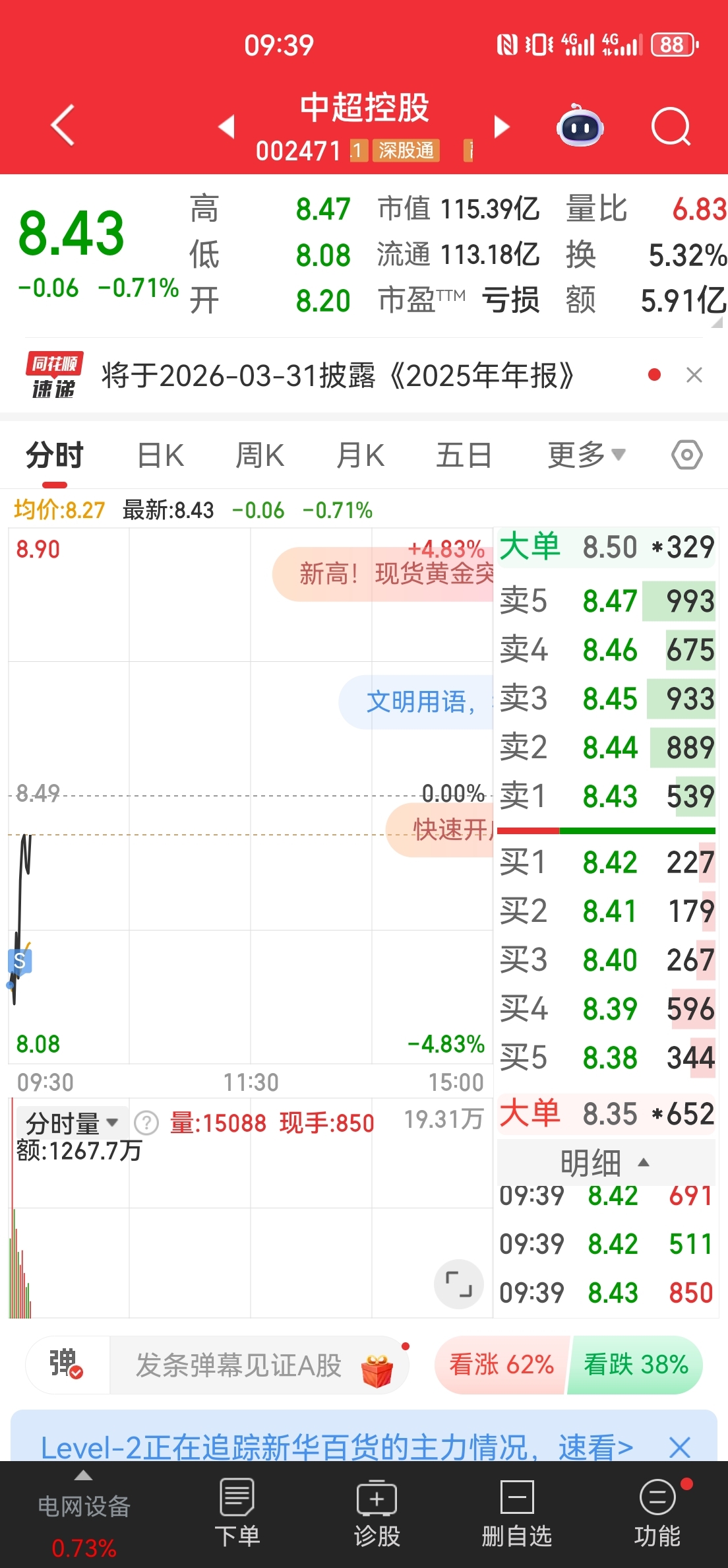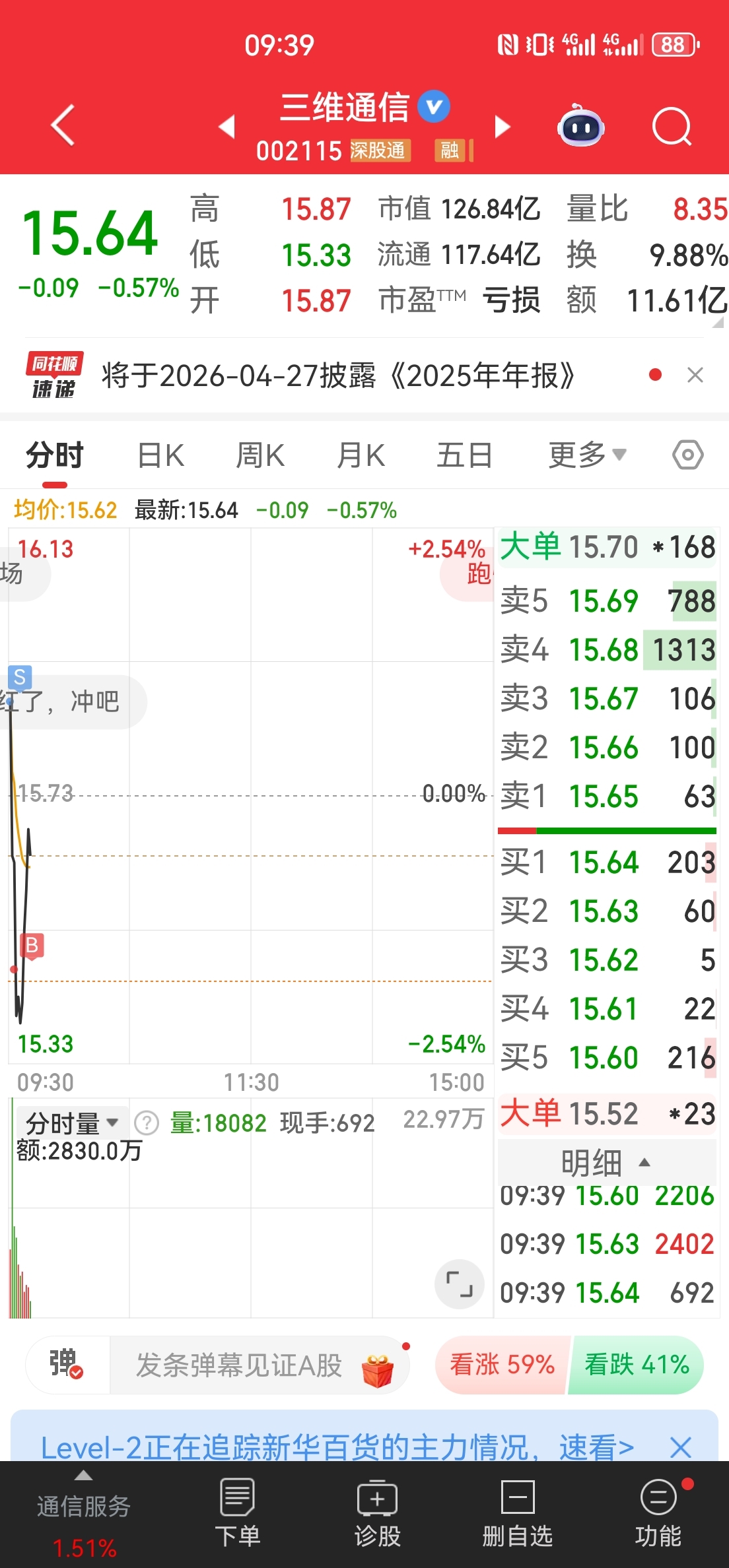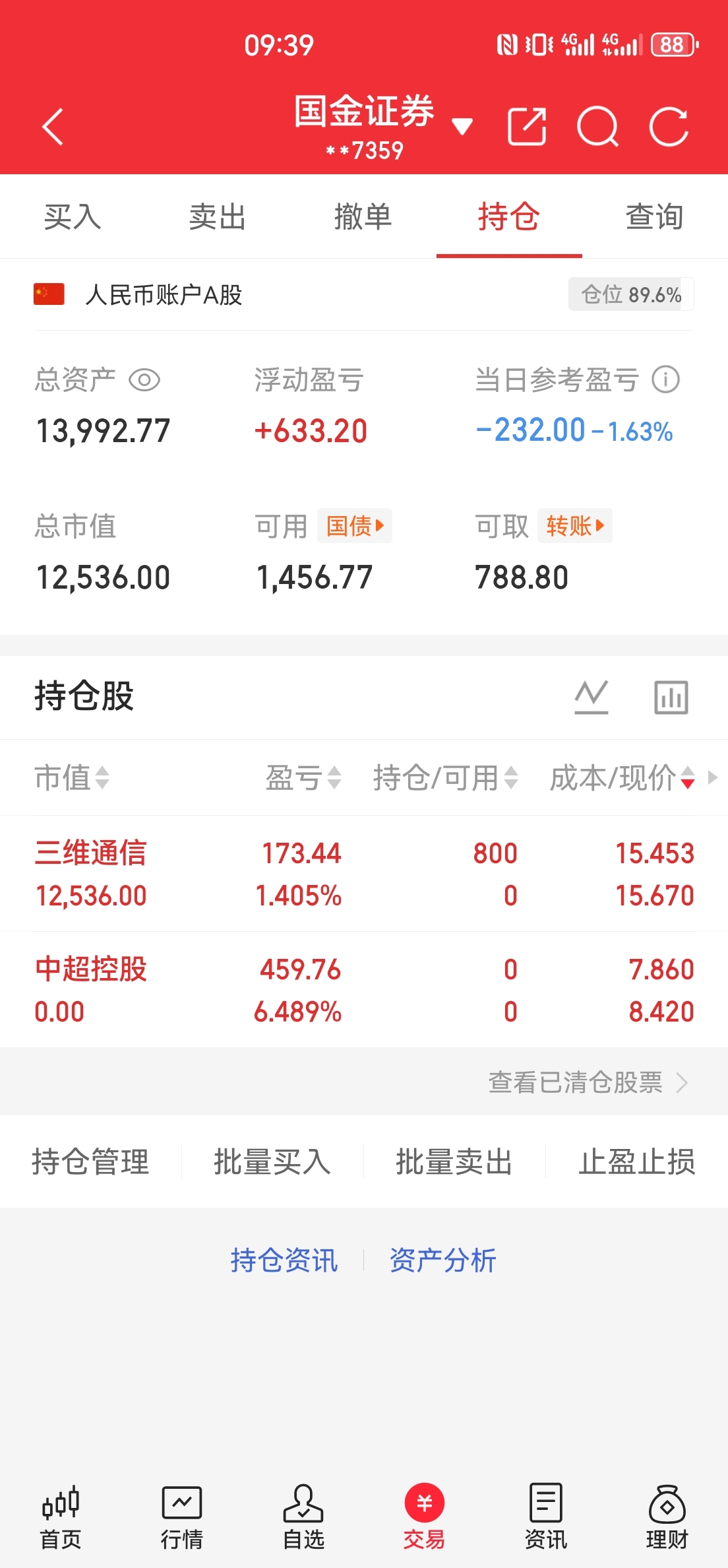 一万到一百万第70天,中超开盘走了,全部水下-1.5买了三维通信