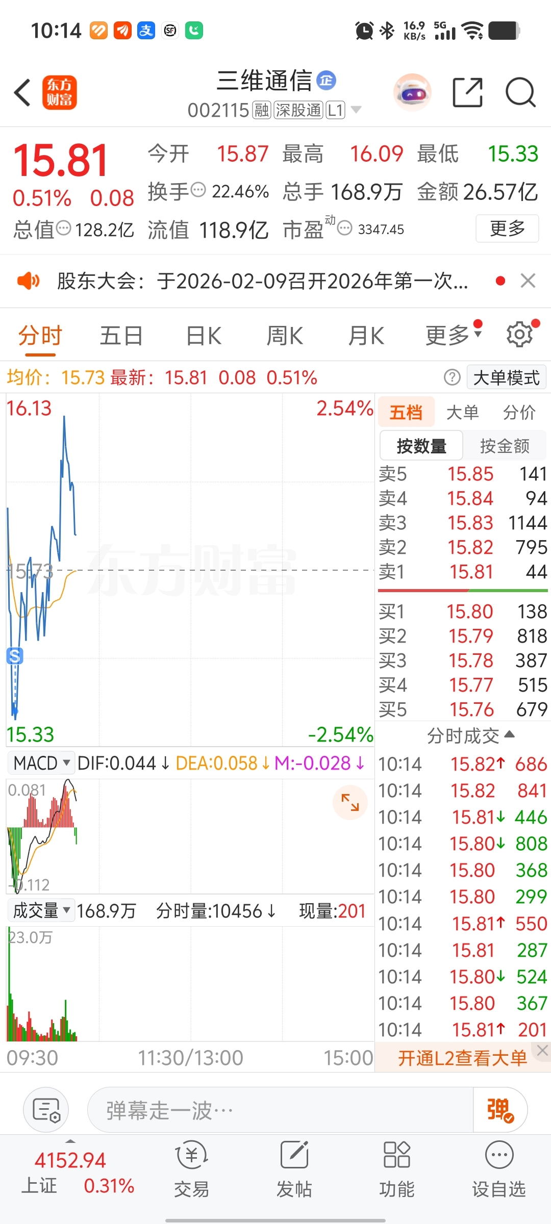 $三维通信(SZ002115)$ 卖早了一点,15个点卖了