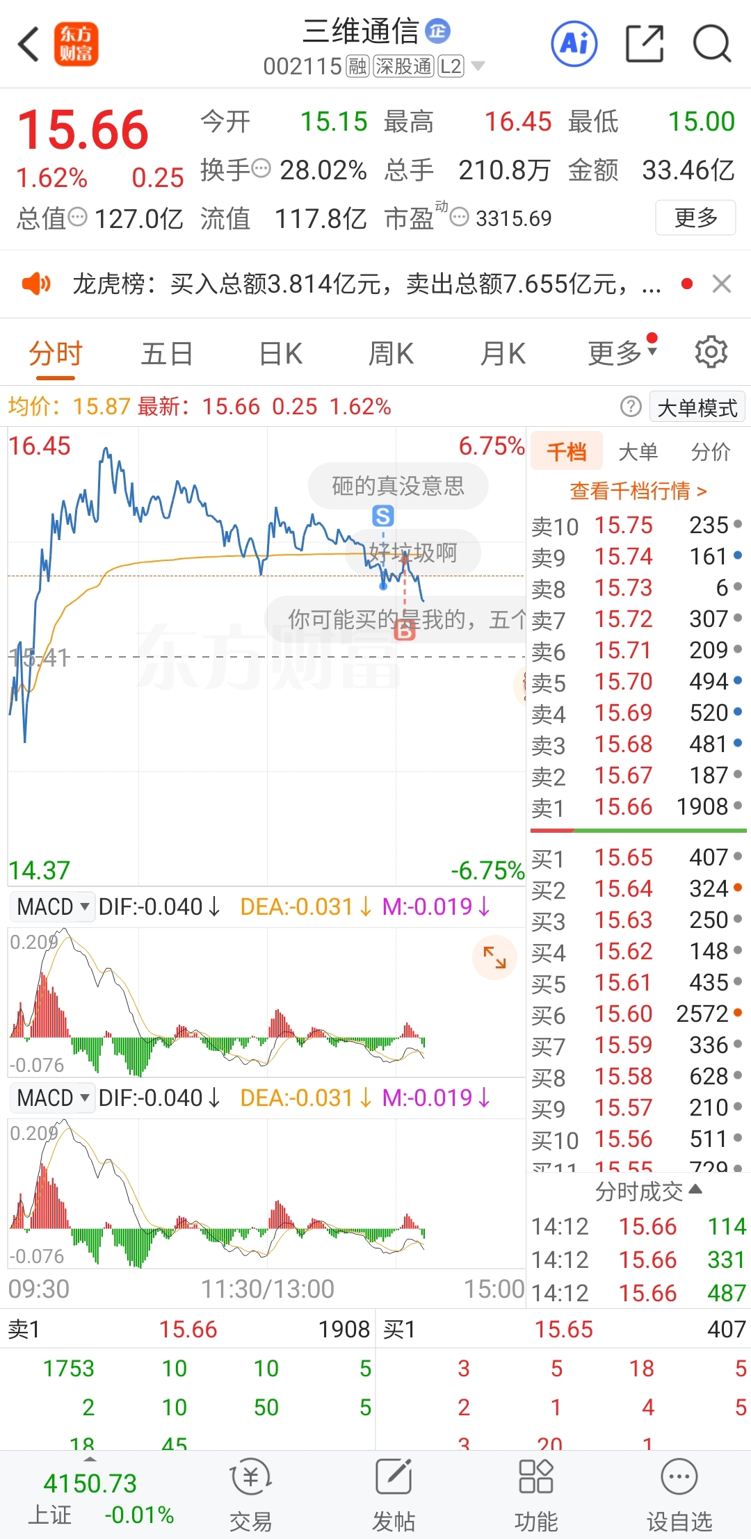$三维通信(SZ002115)$ 真想拉黑了,一买就吃了4个跌停,难回本