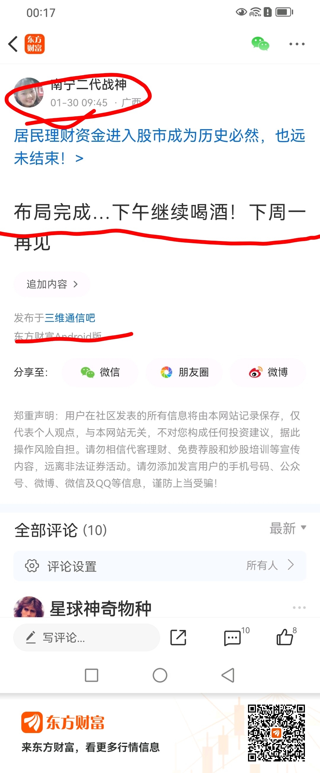 温馨提示: 1.根据《证券法》规定,禁止编造、传播虚假信息或者误导性信息,扰乱证券市场;2.用户在本社区发表的所有资料、言论等仅代表个人观点,与本网站立场无关,不对您构成任何投资建议。用户应基于自己的独立判断,自行决定证券投资并承担相应风险。《东方财富社区管理规定》