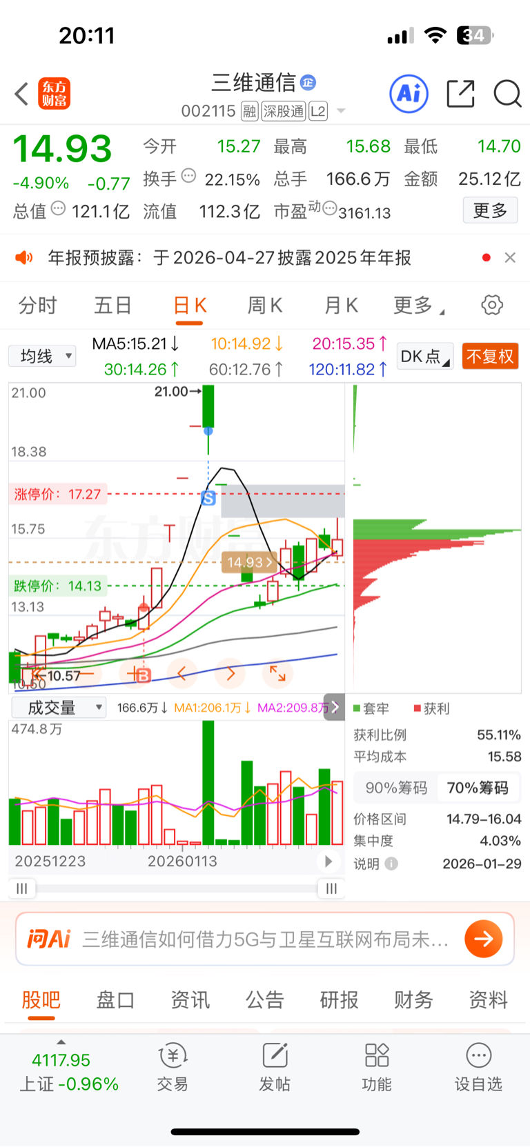 $三维通信(SZ002115)$ 洗的也差不多了就差量能了,继续等吧,先自选置顶,还有没有低吸机会