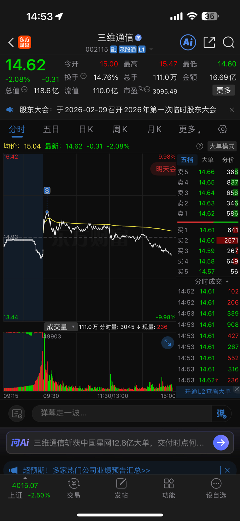 $三维通信(SZ002115)$ 打开一看无语了