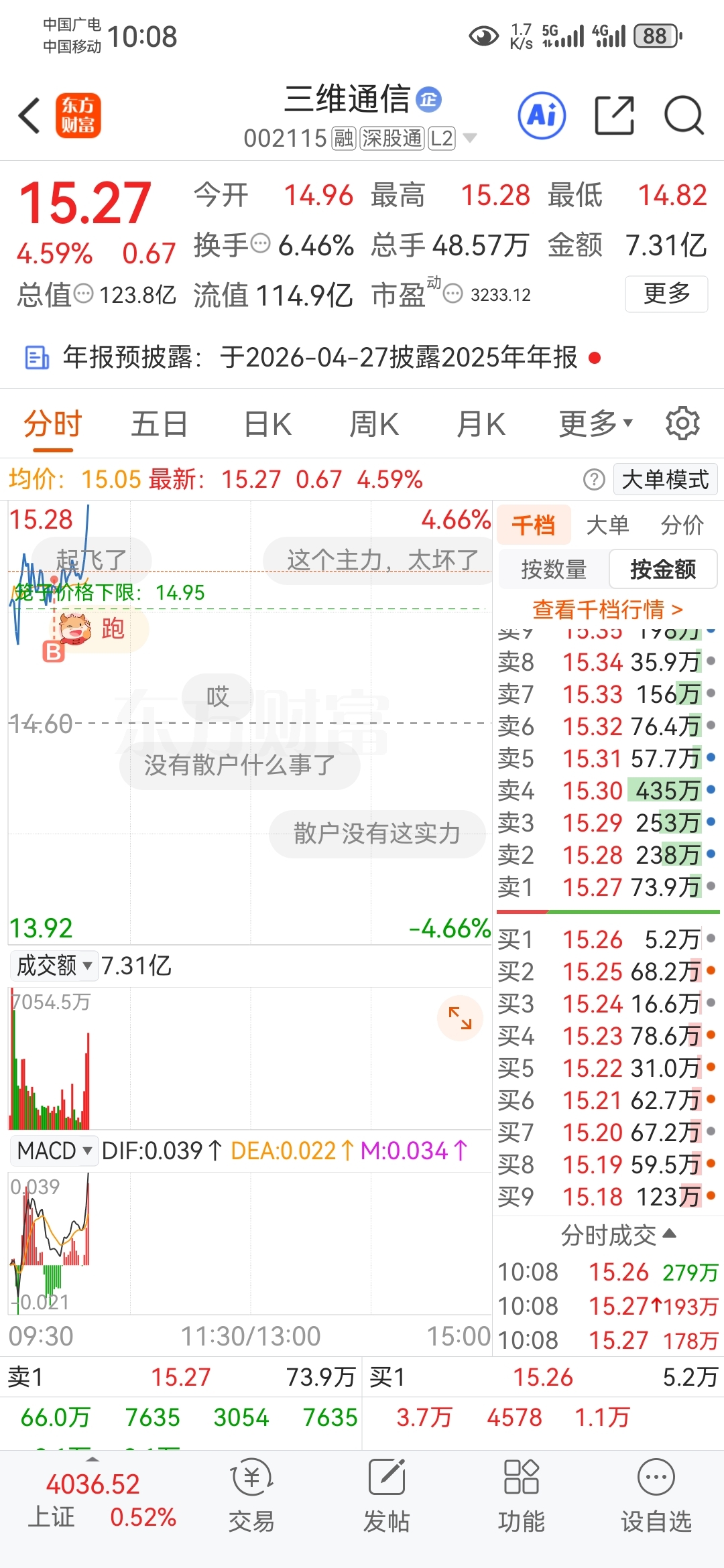 $三维通信(SZ002115)$ 好消息是买了,只买了2手