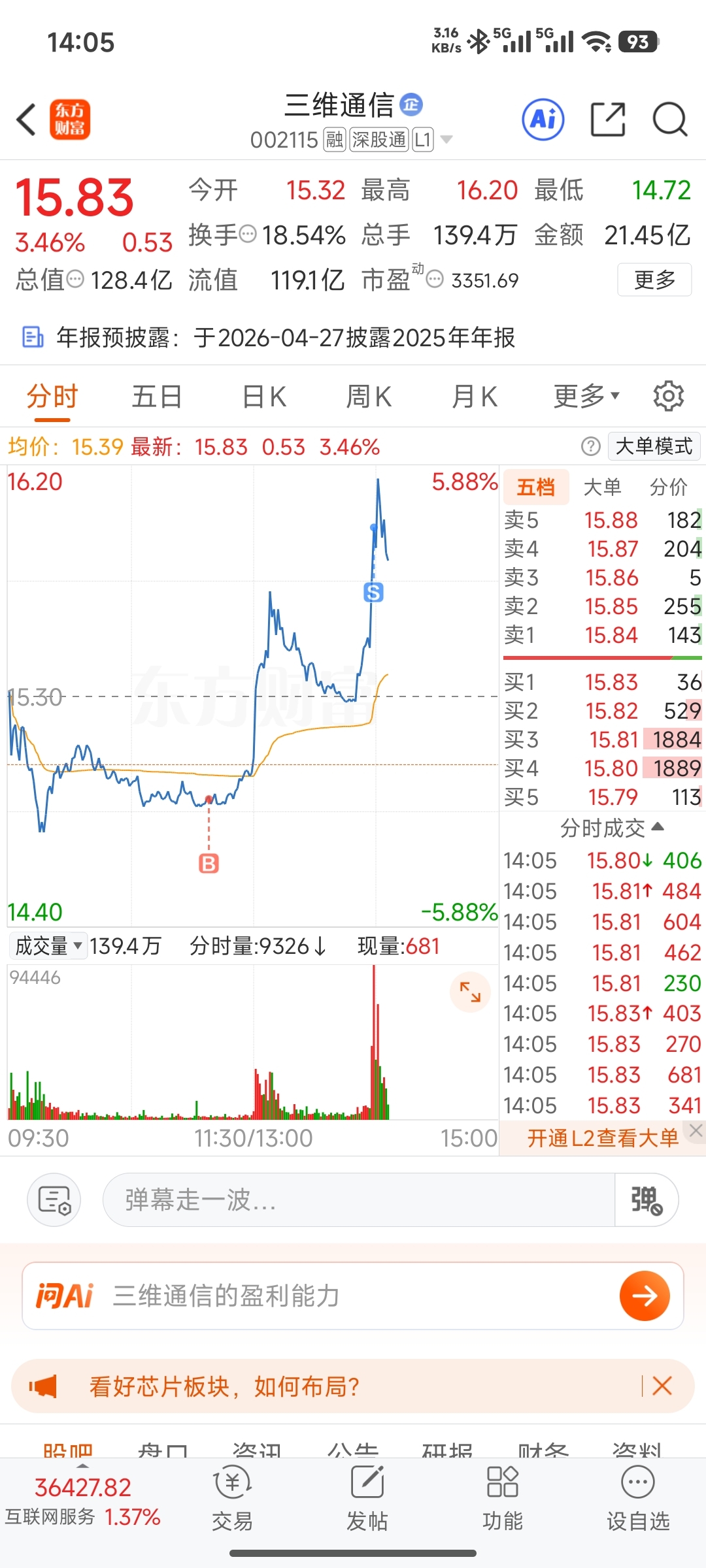 $三维通信(SZ002115)$