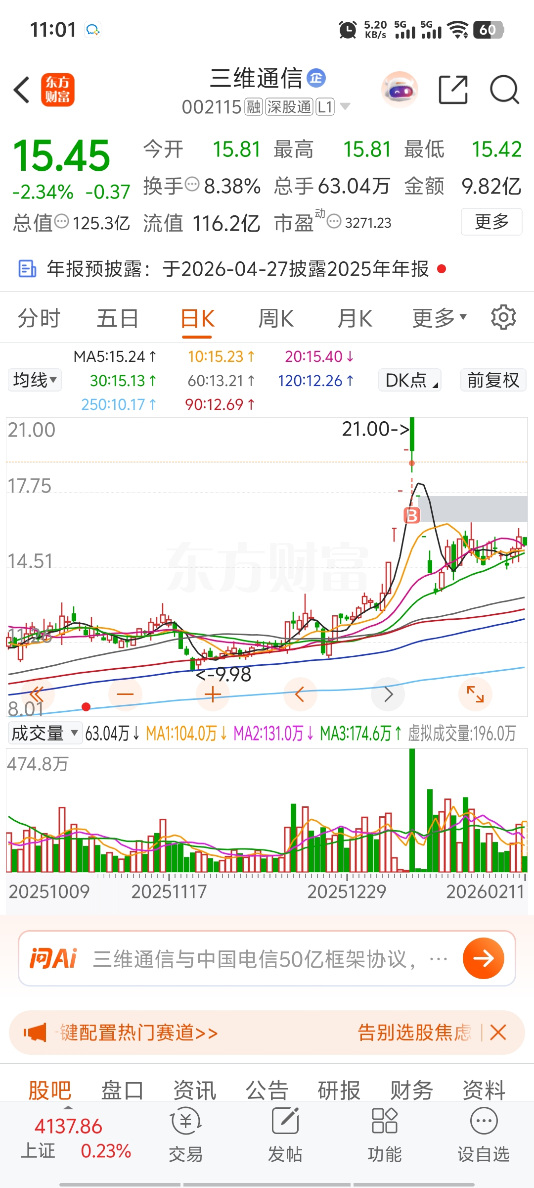 $三维通信(SZ002115)$ 我还没卖