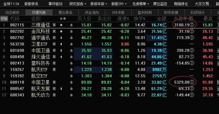 自选的十来个商业航天有关的票是全绿啊~不过话说回来,这种市盈率几千的,买它跟赌钱