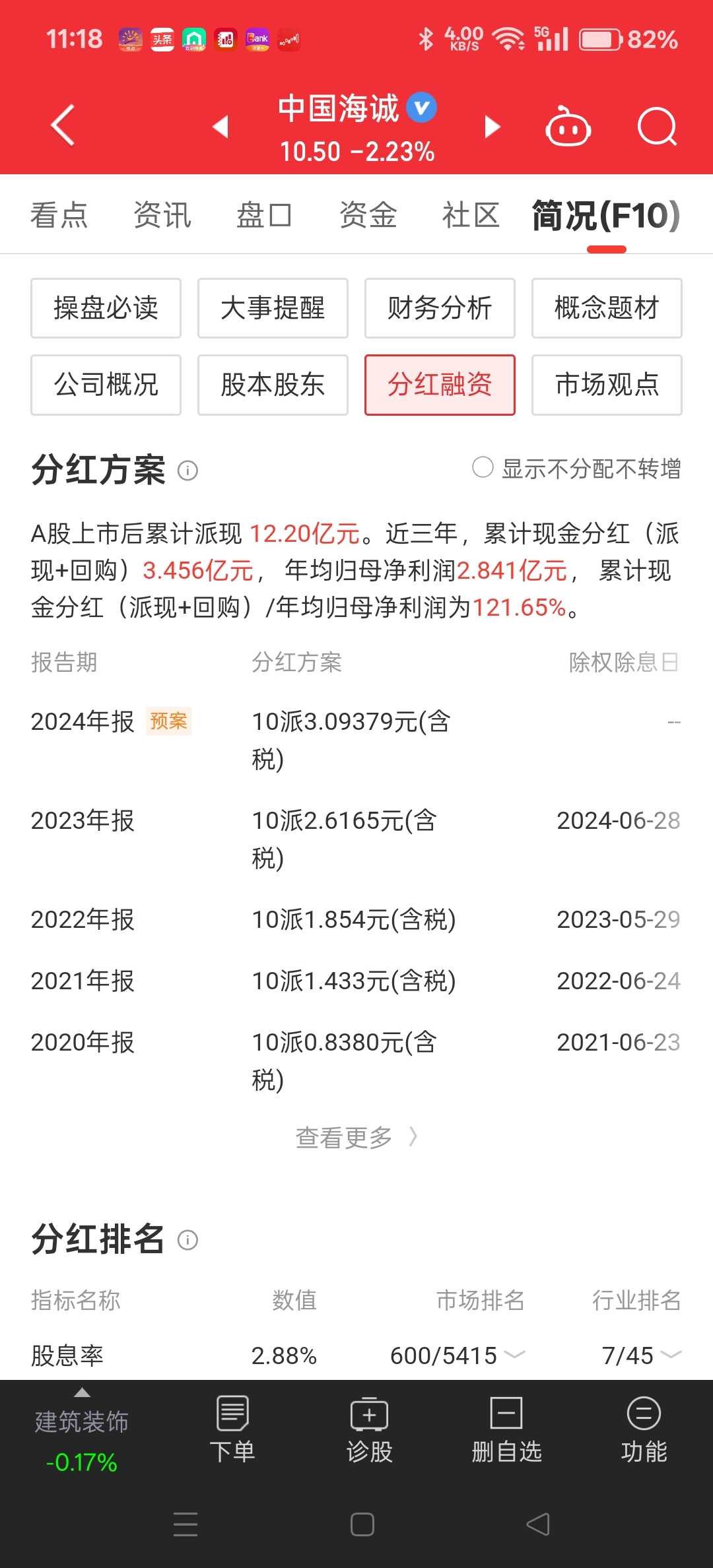 $中国海诚(SZ002116)$ 我就是冲着“分红”来的,分完红就分手
