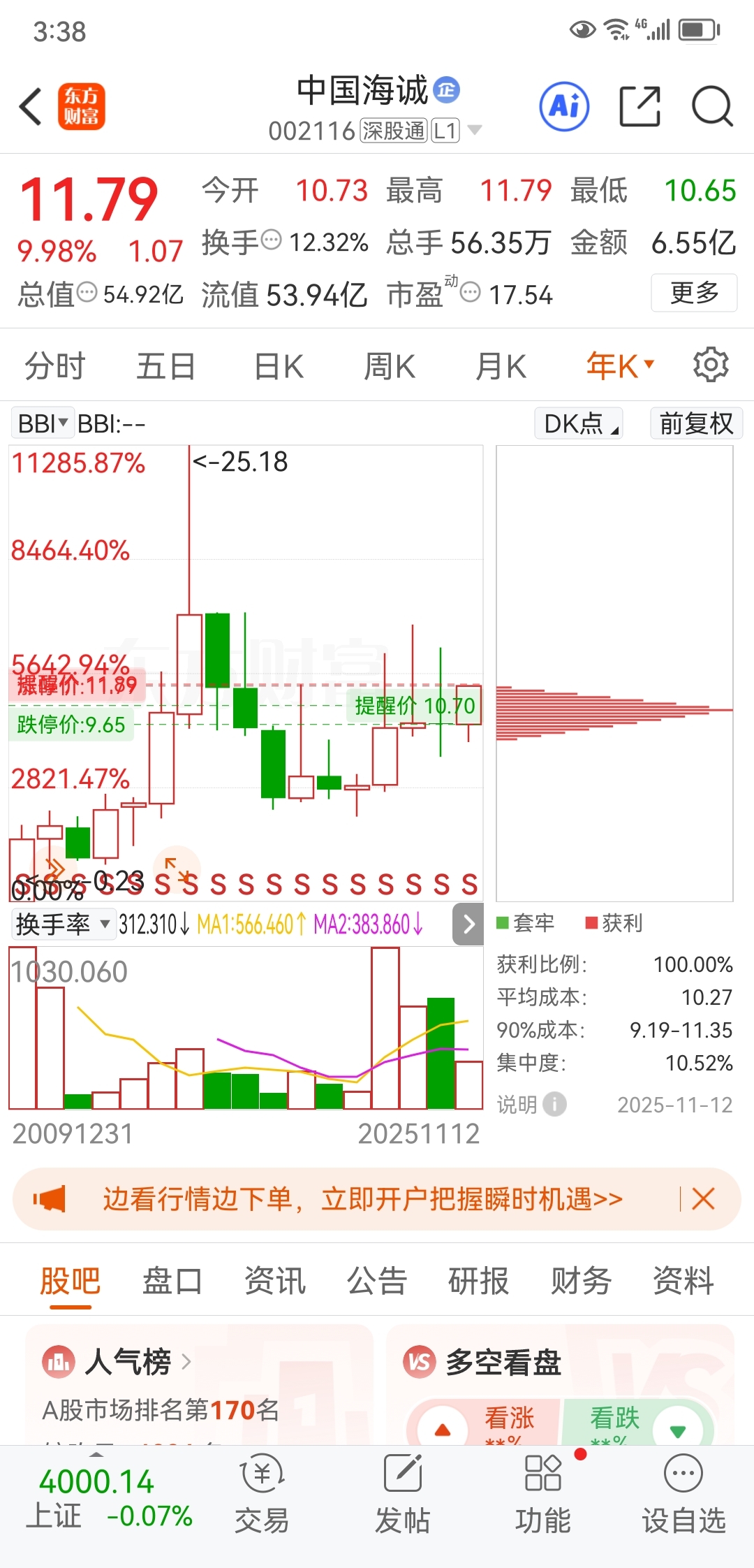 $中国海诚(SZ002116)$ 如果说前三年是熊市,你看今年大牛市的高点还不如前三年熊市时期的高点,理论上不可能。