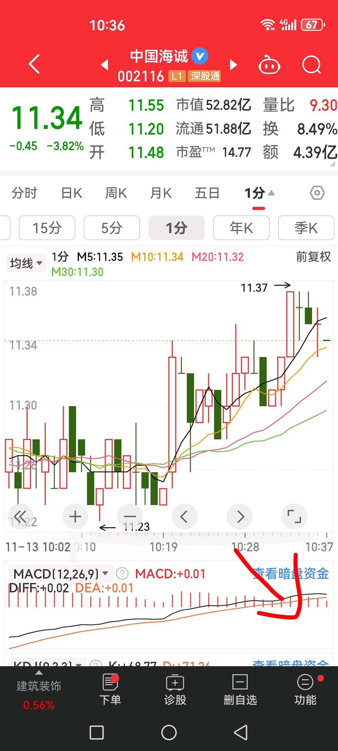 $中国海诚(SZ002116)$ 快跑跌破位置了,要死叉了
