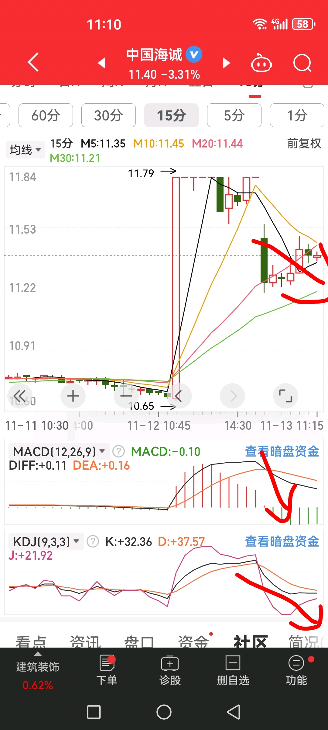 $中国海诚(SZ002116)$ 快跑要破位了,待会指数下来就暴跌