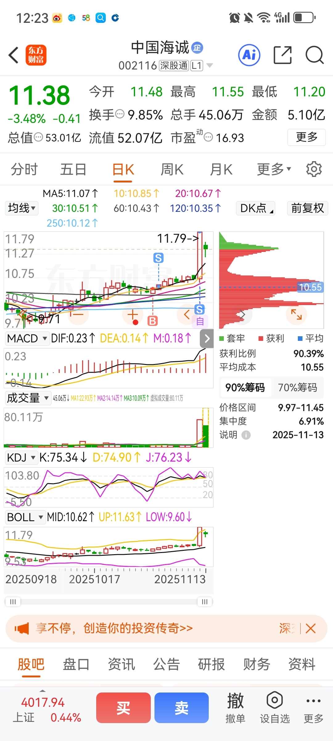 $中国海诚(SZ002116)$ 昨天再次封板走了, 量太大。看它怎么调整吧。 观察中