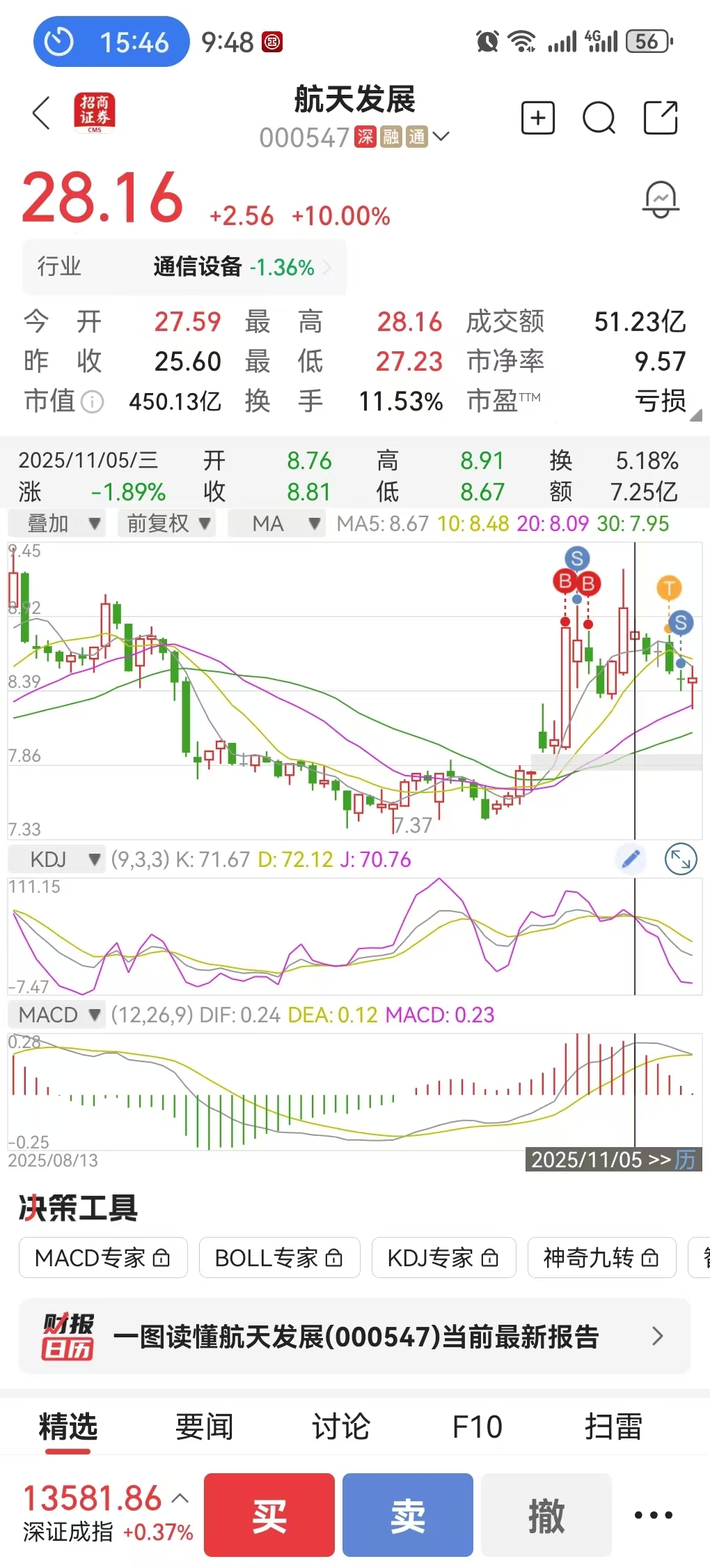 这里的股民应该是全a股混得最惨的股东,糙,11月12日涨停就改卖掉换回航天发展,