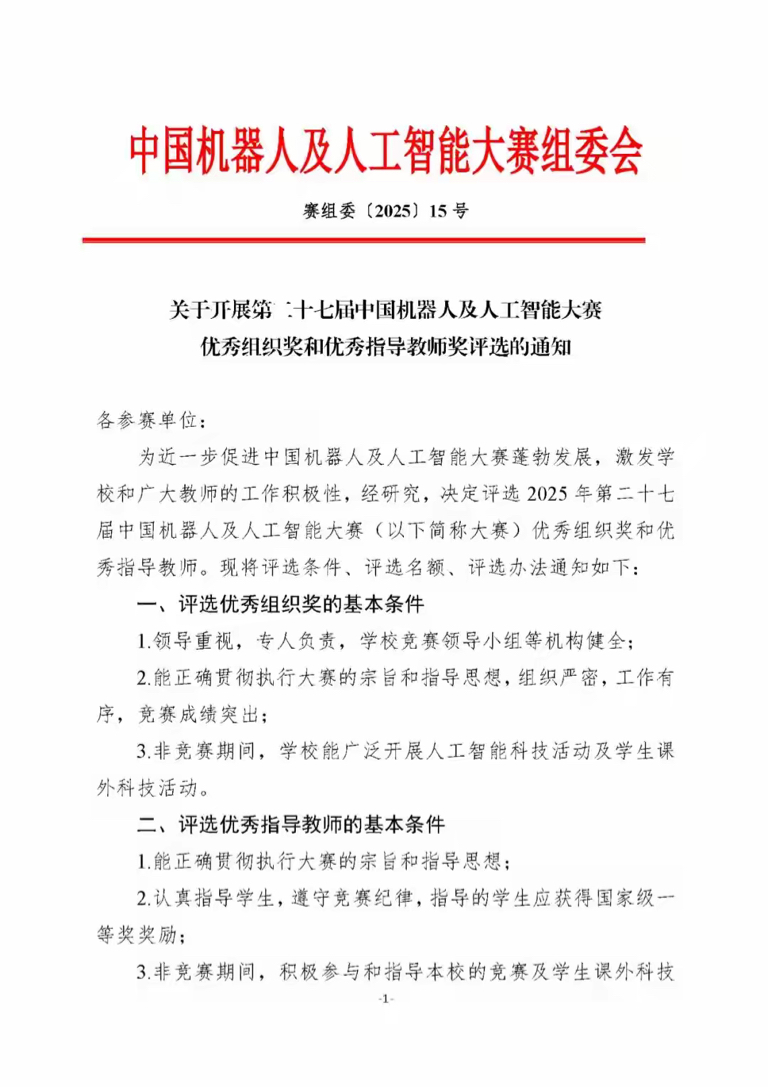 关于开展CRAIC2025优秀组织奖和优秀指导教师奖评选的通知