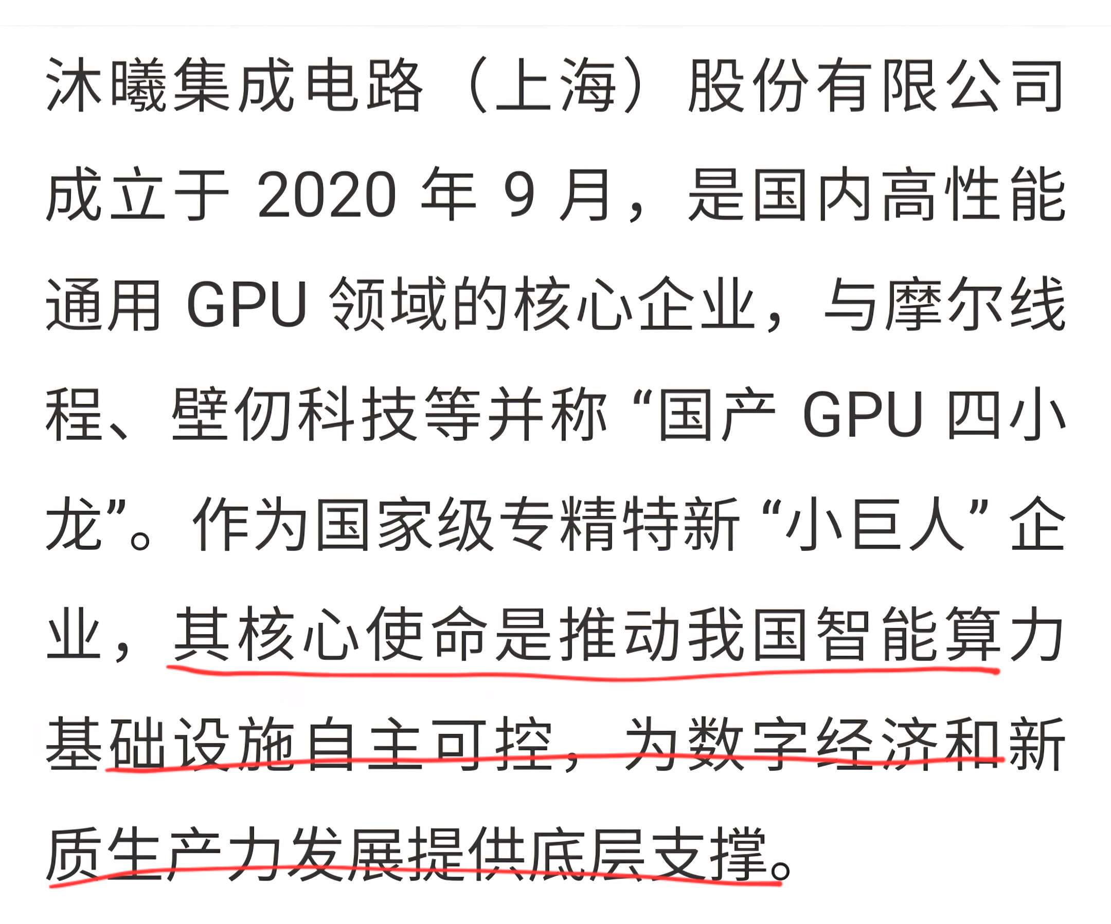 上海沐曦集成的上市核心使命就是推动我国智能算力的自主可控!大力发展数据中心!而在