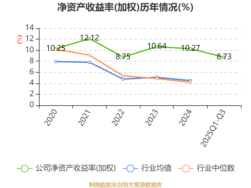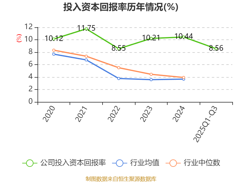 盈利能力方面, 2025年前三季度公司加权平均净资产收益率为8.73%,同比上升3.28个百分点。公司2025年前三季度投入资本回报率为8.56%,较上年同期上升3.21个百分点。