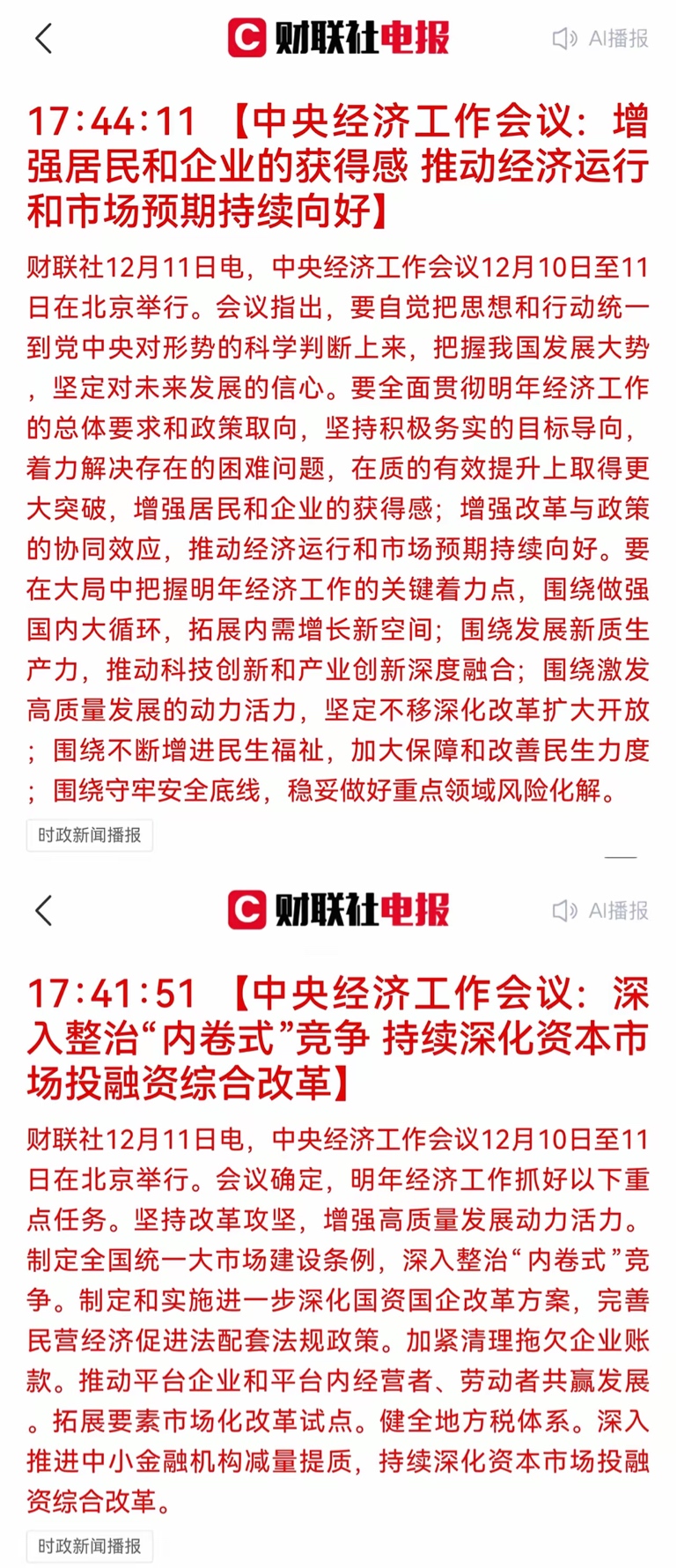 排在首位的是扩大内需,反内卷明年CPI必然要转正。房子稳住不大跌。持续深化资本市