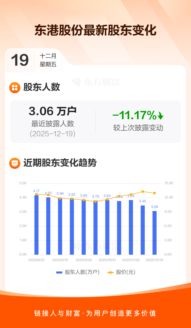 东港股份:截至12月19日最新股东户数3.06万户,较上期减少11.17%