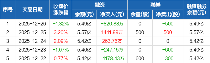 东港股份:融资净偿还820.88万元,融资余额5.49亿元(12-26)