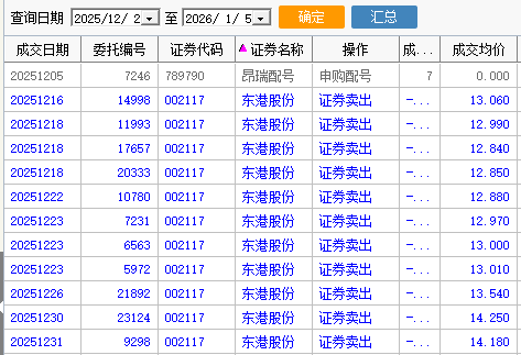 还好识破主力的意图,12月一直在卖东港,虽然不全是14元上方卖的,但是逃过跌停也不错了。