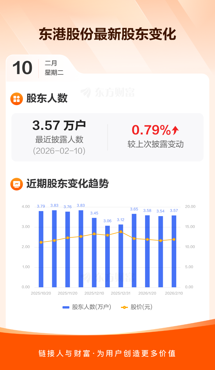 东港股份:截至2月10日最新股东户数3.57万户,较上期增加0.79%