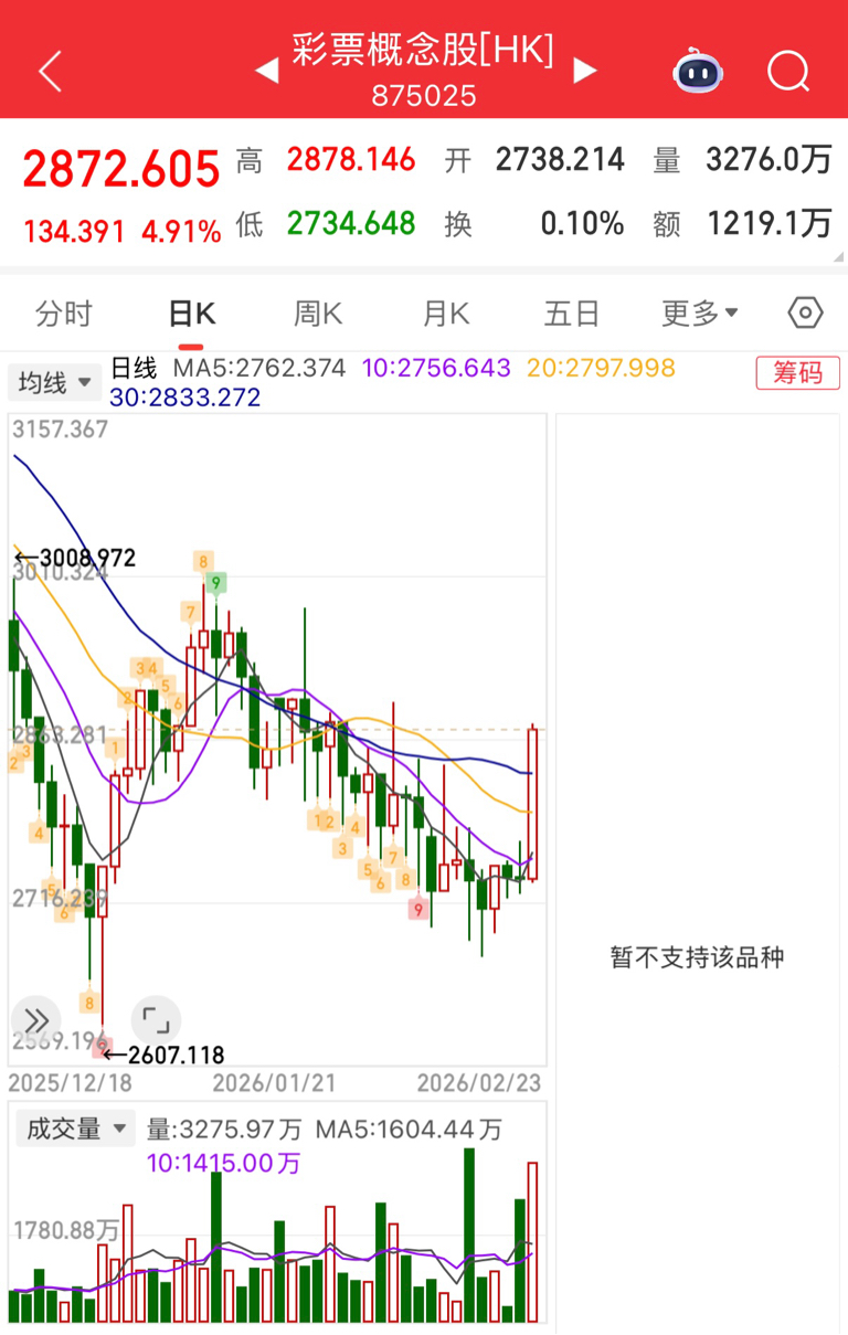 刚刚彩票概念反弹了。