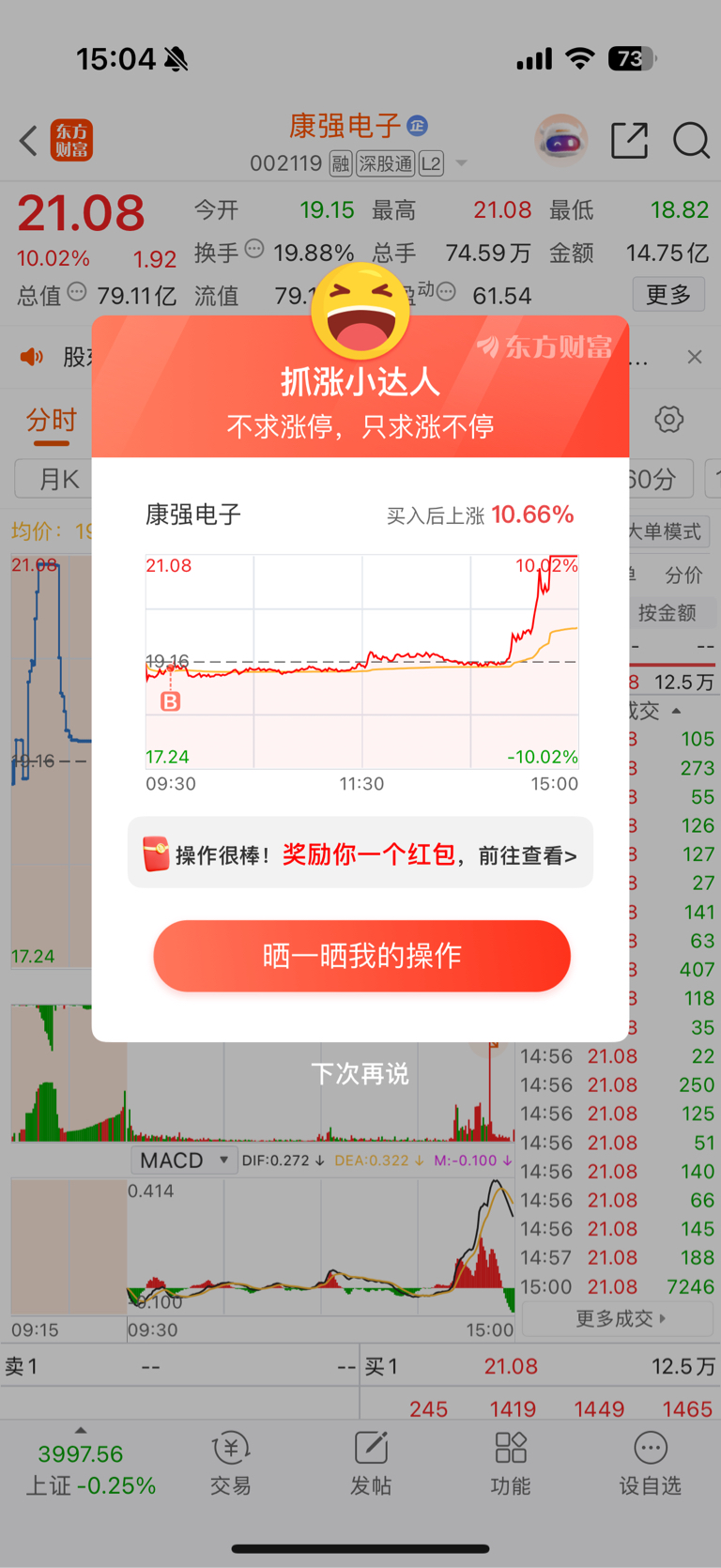 $康强电子(SZ002119)$ 我就要炫耀,求求下周被埋