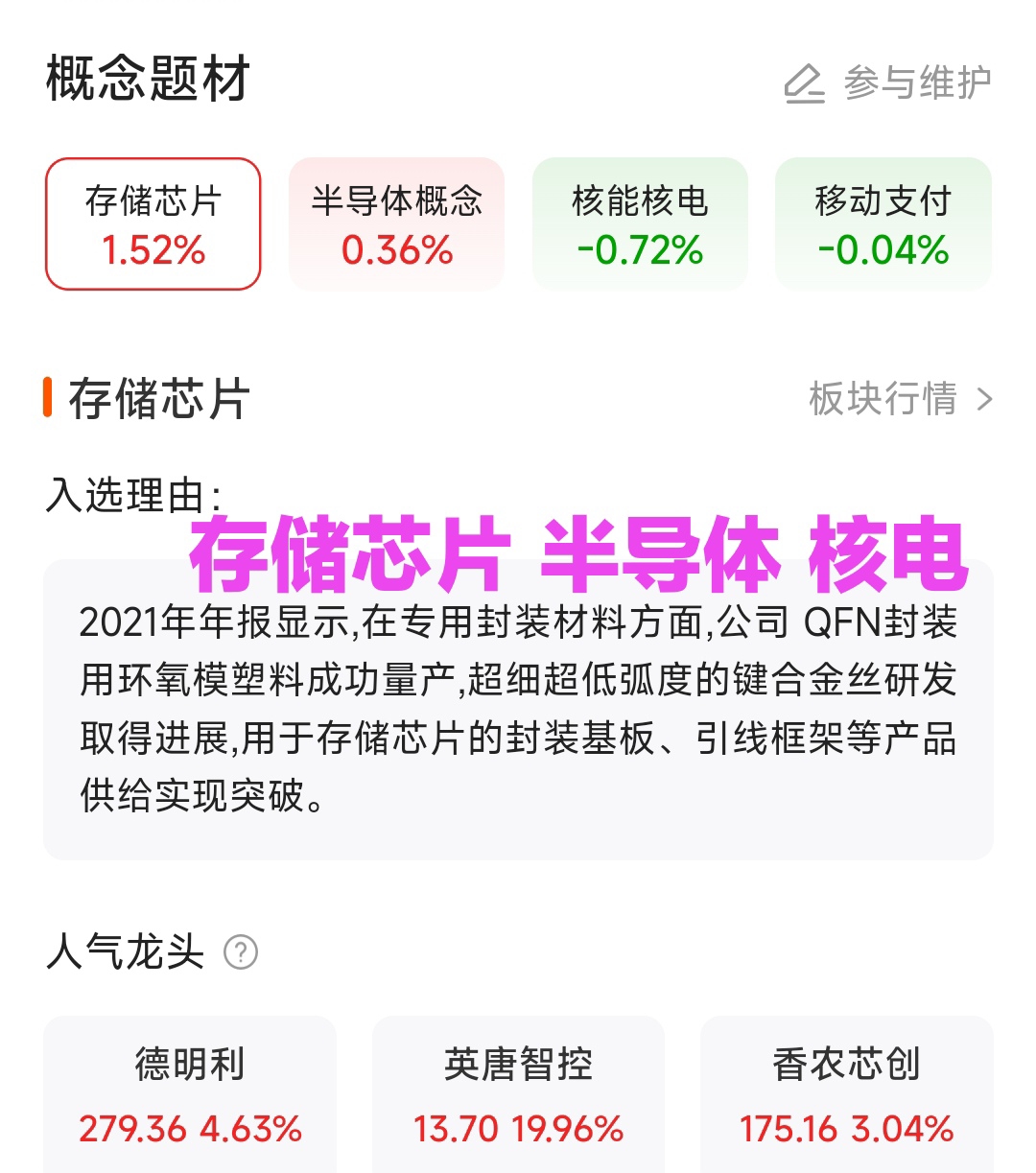 存储芯片+半导体+核电+移动支付+增持回购,补涨潜力,首板回调,绿盘买入。三季报