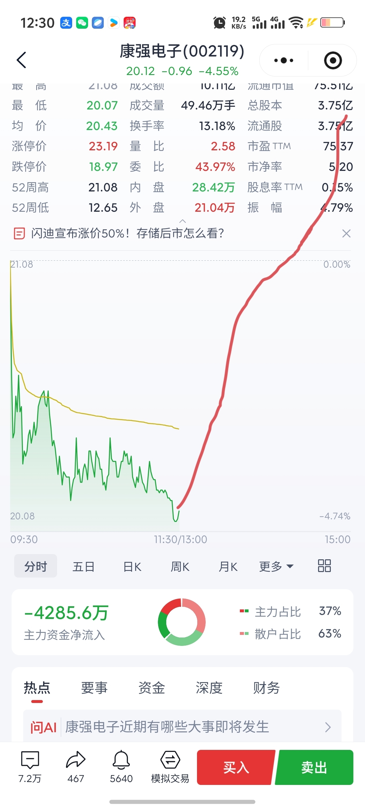 $康强电子(SZ002119)$ 下午开盘后会不会这样