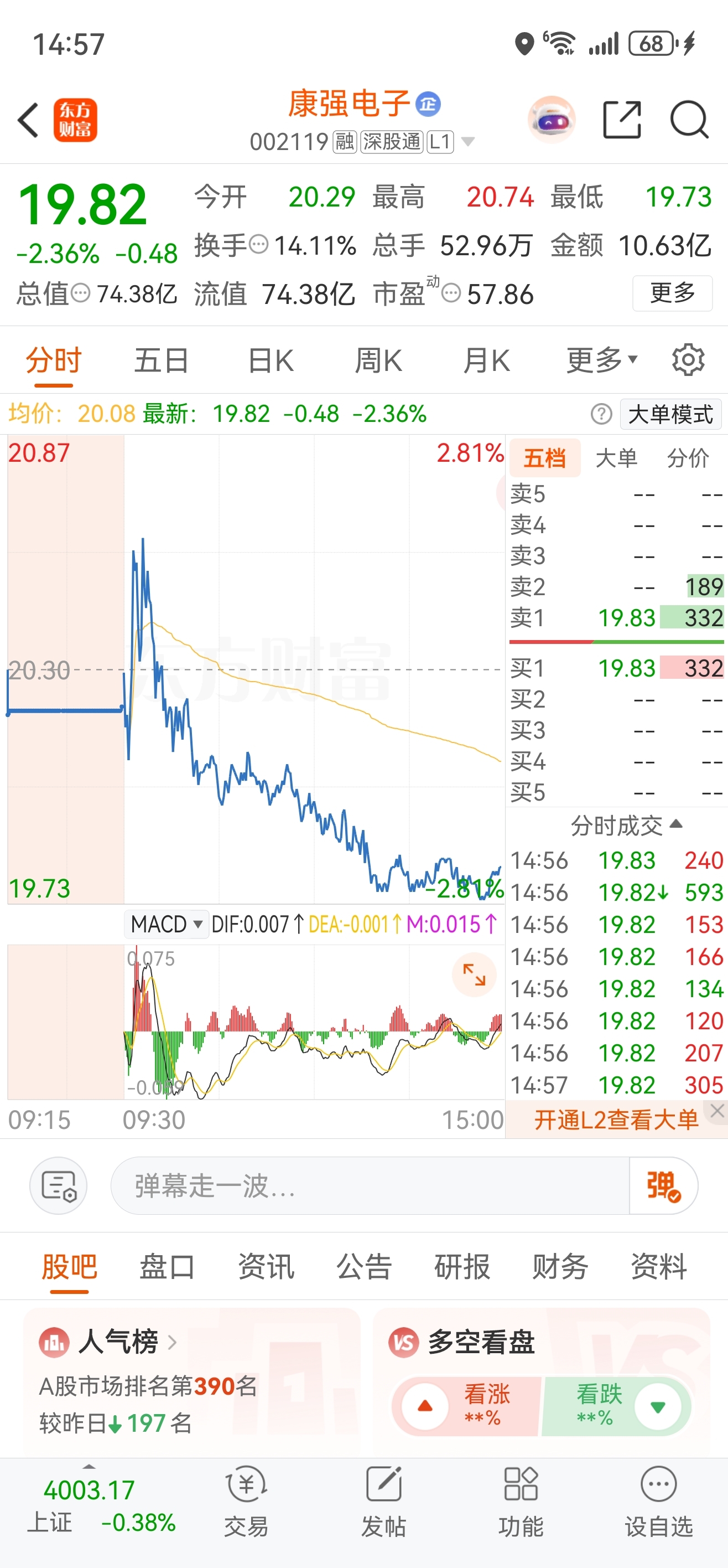 $康强电子(SZ002119)$ 强子今天早上没有抛你,希望你明天有作为一点,两天亏了7个点了。