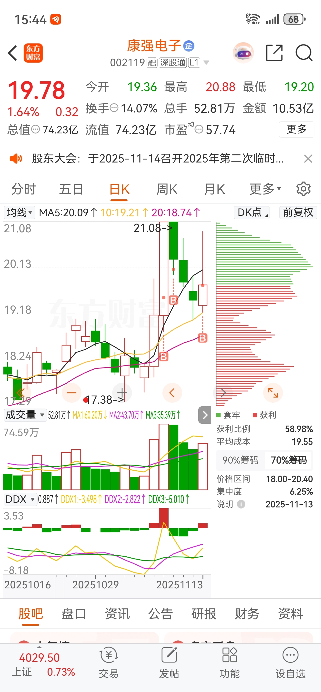 $康强电子(SZ002119)$ 今天冲高太贪了没有跑,希望明天能给吃肉的机会
