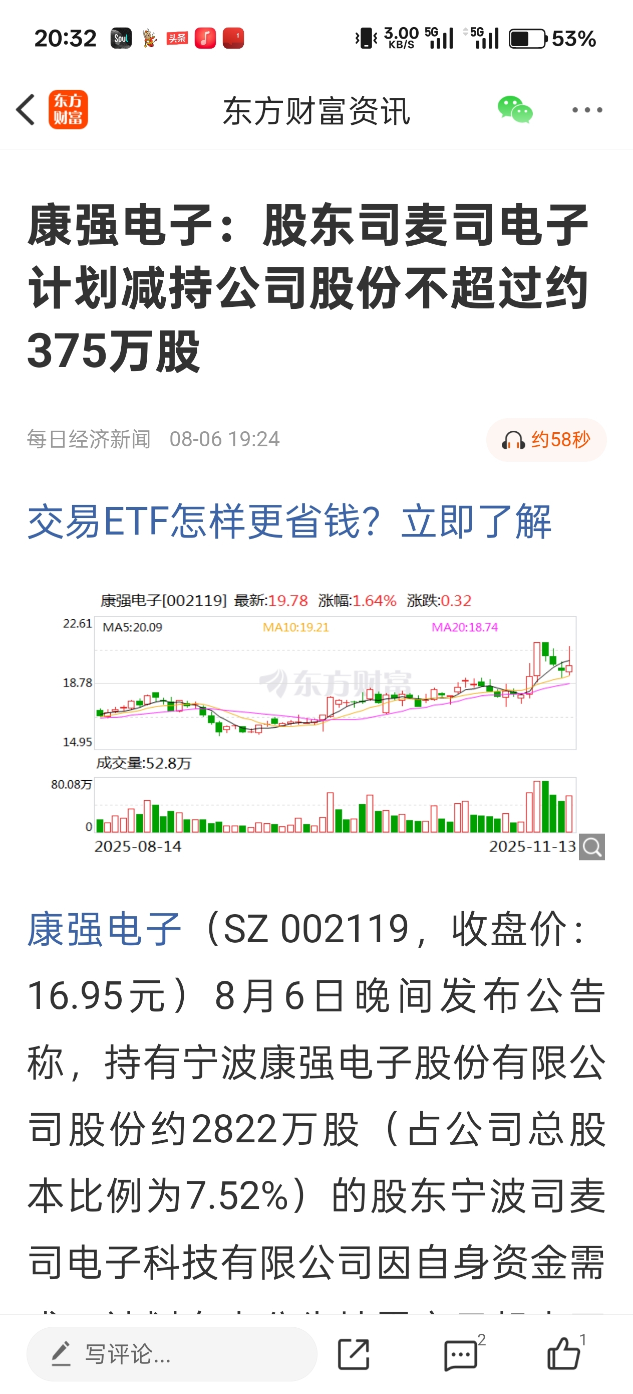 $康强电子(SZ002119)$ 八月六号,同一个股东,同样减持375万股,梅开二度,很好玩呢?