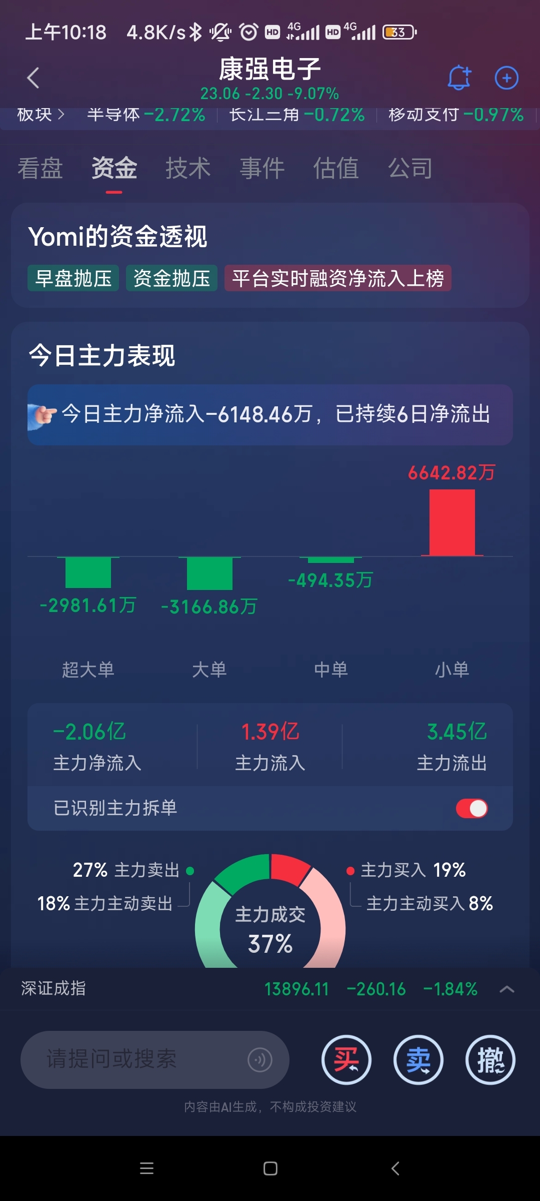 $康强电子(SZ002119)$ 跑了两个亿