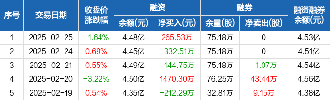 韵达股份:融资净买入265.53万元,融资余额4.48亿元(02-25)