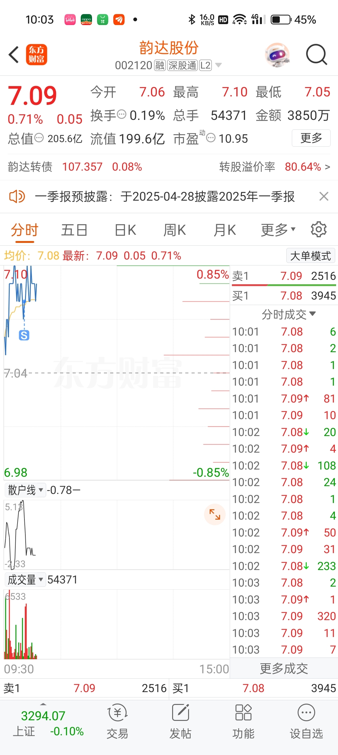 $韵达股份(SZ002120)$