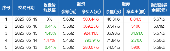 韵达股份:融资余额5.63亿元,创历史新高(05-19)