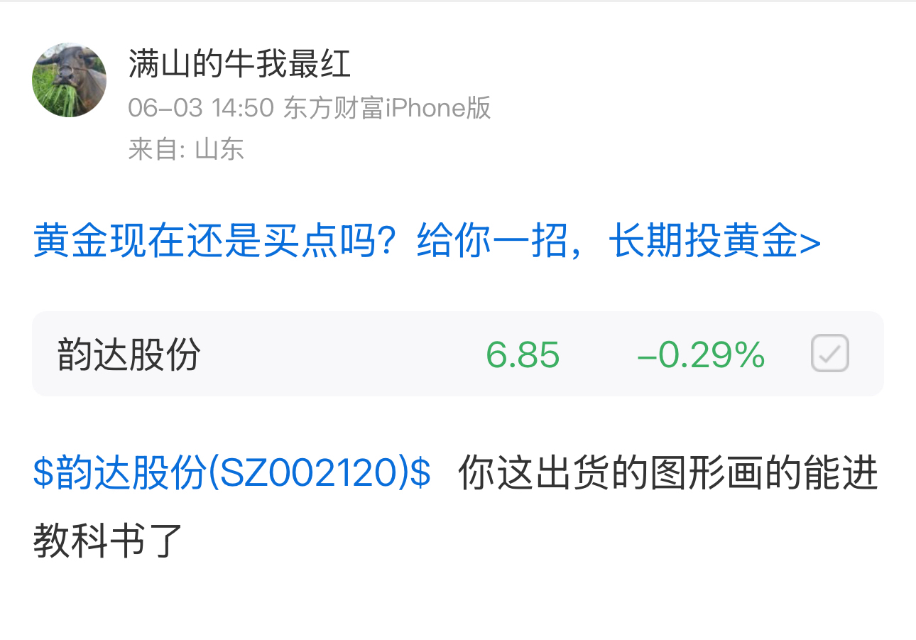 $韵达股份(SZ002120)$ 试盘吸筹啥的咱看不准,这出货的走势你都经典的不能再经典了
