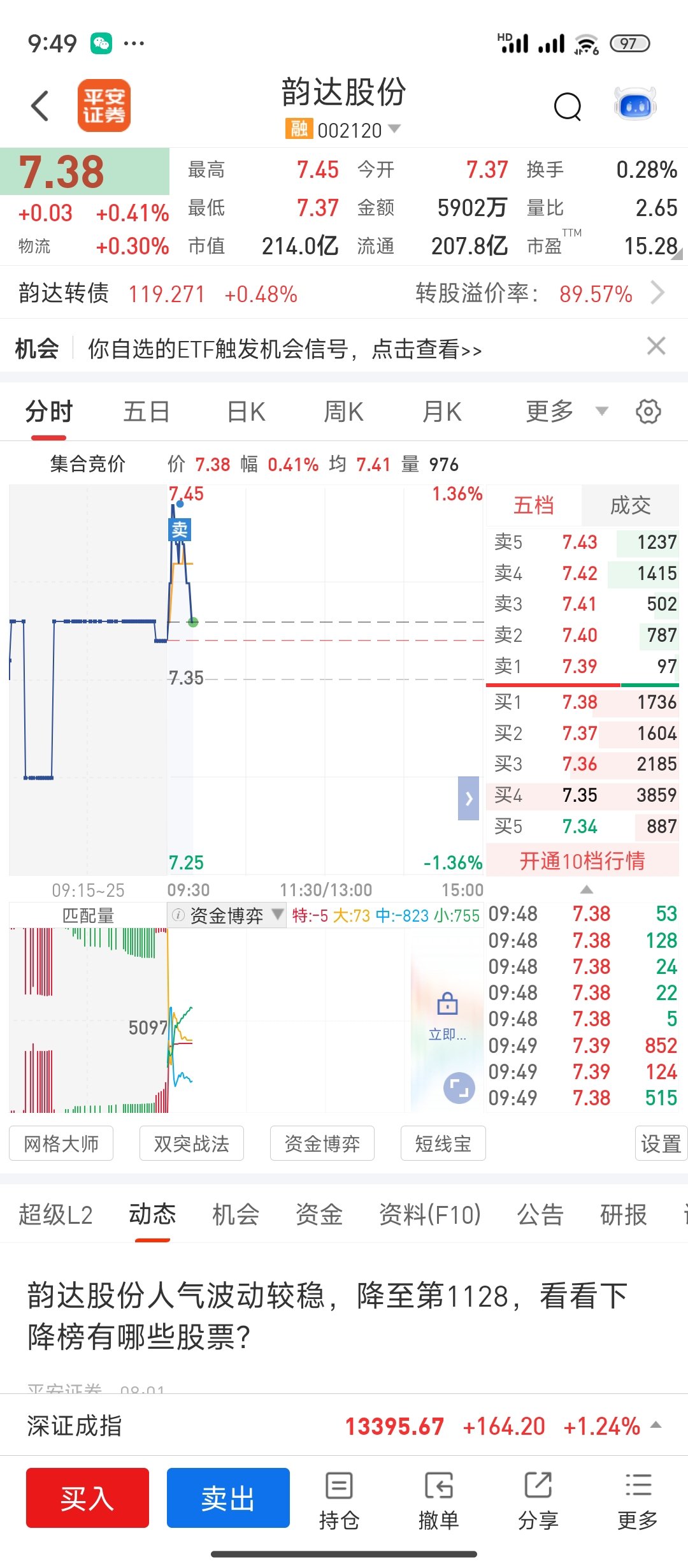 $韵达股份(SZ002120)$ 啊!昨天最低点买的今天冲高就跑了!真不是我砸盘啊,这股只要不贪心做T真无敌了!