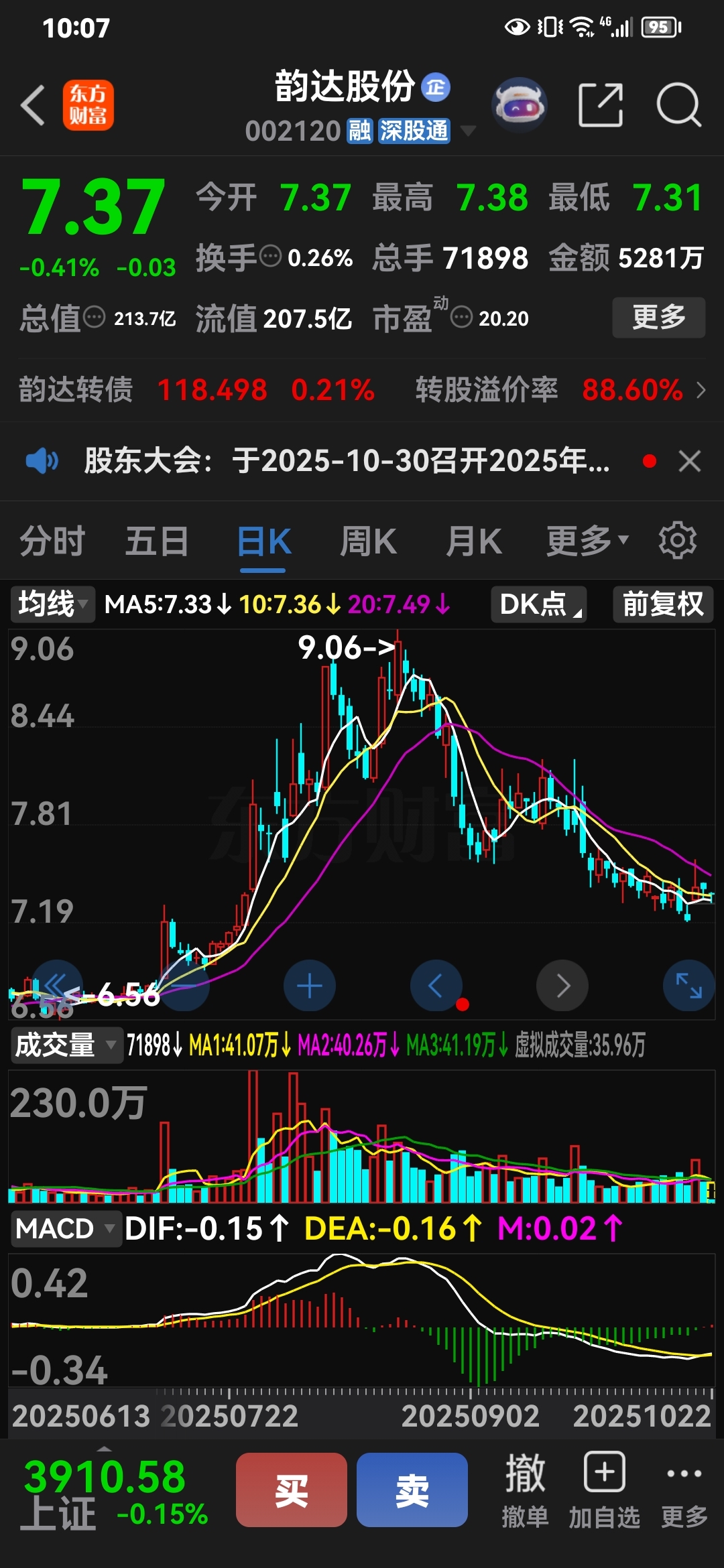$韵达股份(SZ002120)$ 没有持仓观察下后面走势