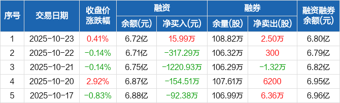 韵达股份:融资净买入15.99万元,融资余额6.72亿元(10-23)