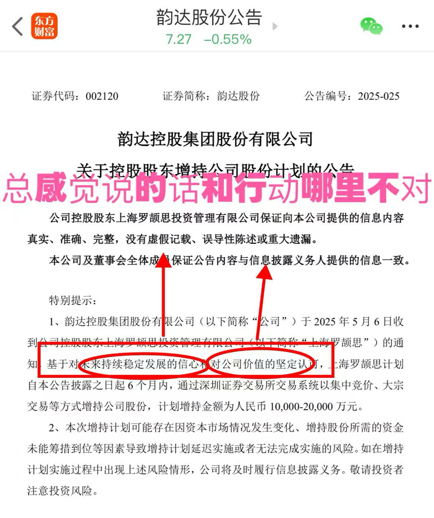 $韵达股份(SZ002120)$ 大股东说看好公司发展所以增持