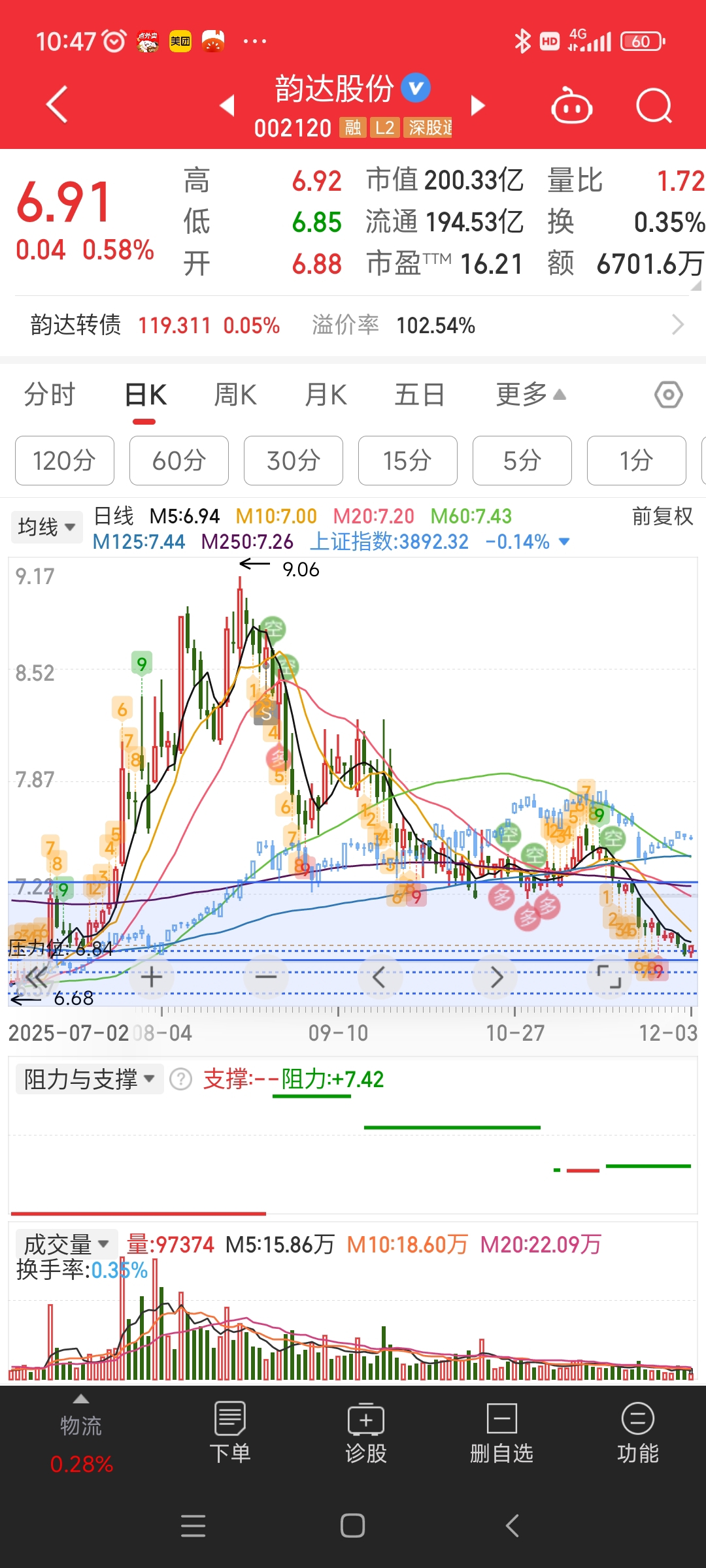 $韵达股份(SZ002120)$ 道心破碎,跌的时候长年累月,涨的艰难重重