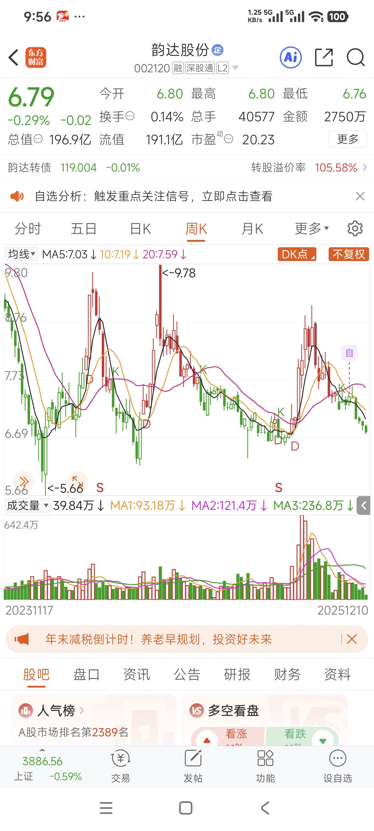 $韵达股份(SZ002120)$ 5.66