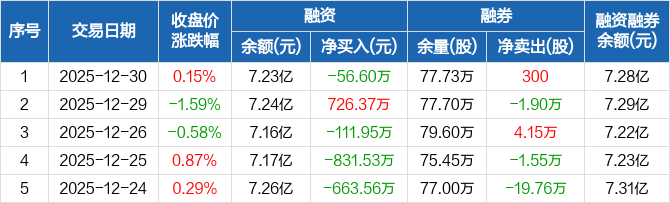 韵达股份:融资净偿还56.6万元,融资余额7.23亿元(12-30)
