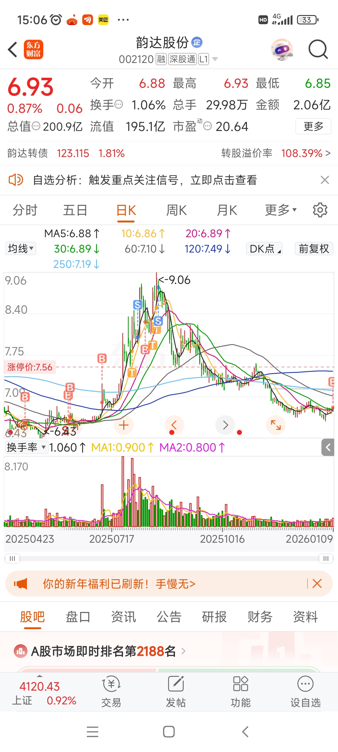 $韵达股份(SZ002120)$ 我回来了