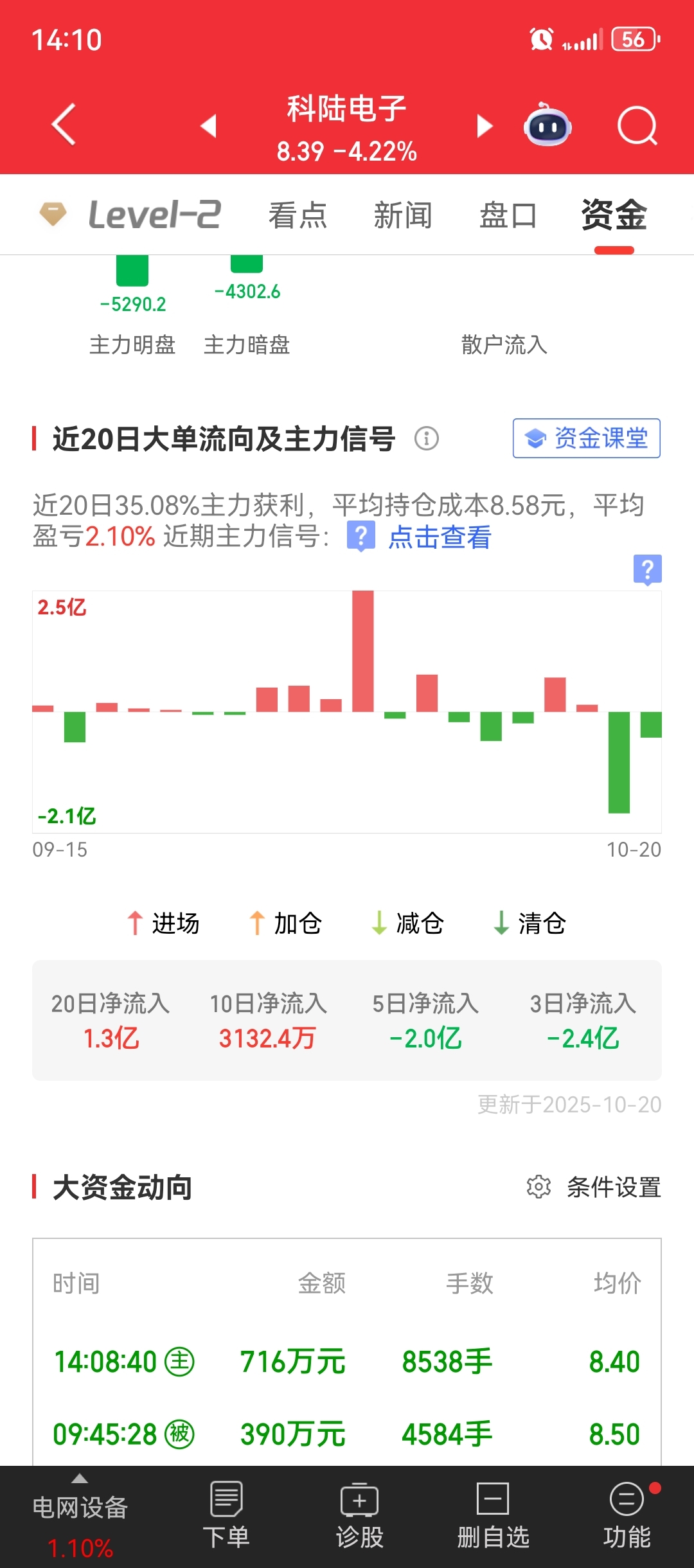 $科陆电子(SZ002121)$ 都是大资金卖出,有问题