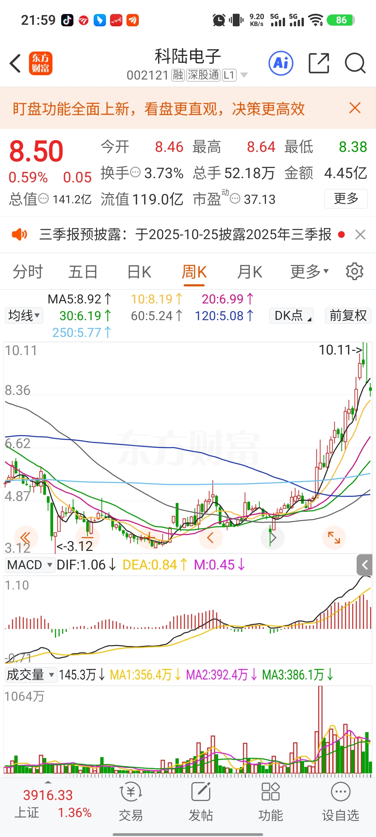 $科陆电子(SZ002121)$ 这周线图就问你们看着怕不