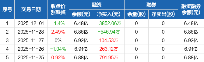 科陆电子:融资净偿还3852.06万元,融资余额6.48亿元(12-01)