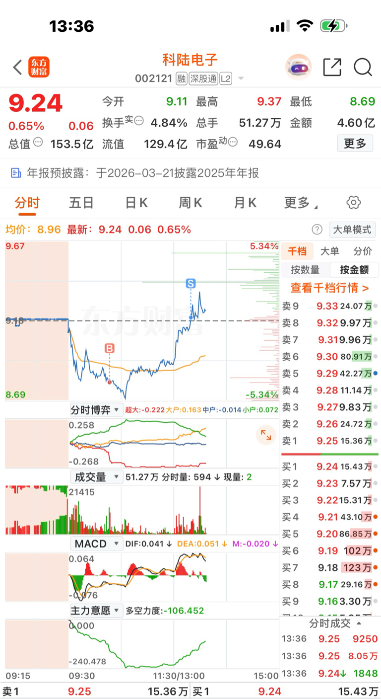 科陆电子昨日长线加仓200手。今日继续暴跌,长线不动短线做了一个日内T。