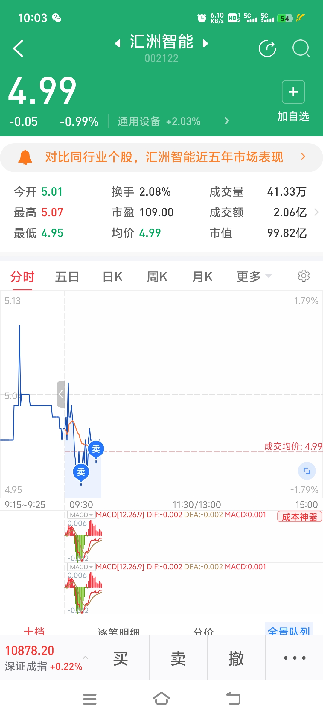 $汇洲智能(SZ002122)$ 赚两个点走了,受不了